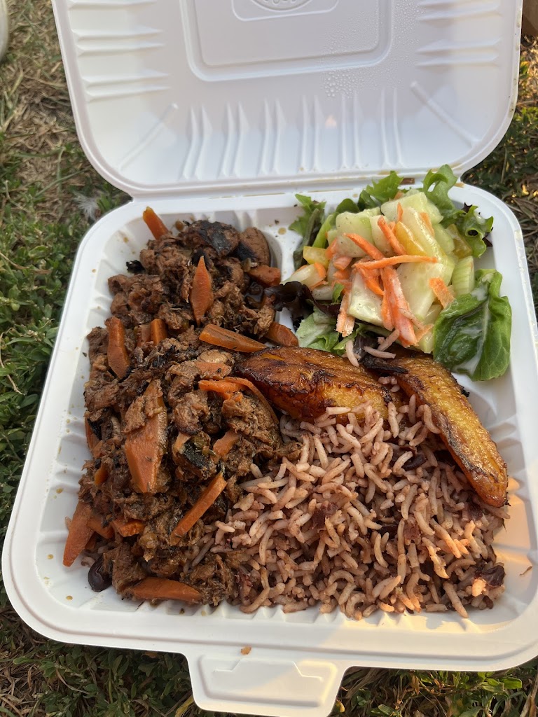 Tasted very good and hearty! Got the small size with rice + chickpea curry + bean stew and greens and man it tasted really good! Never had vegan Caribbean food before