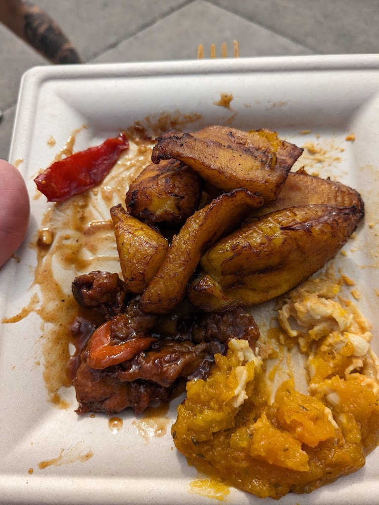 Got the chick pea curry bowl. The salad lettuce very shredded like chipotle topping but was fresh. Rice and peas was slightly dry. Chick pea curry is alright and the plantain is good. Would probably try another dish.