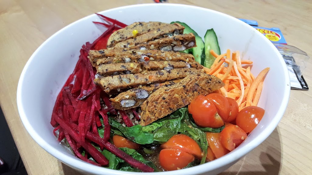 I ordered Salmon power bowel - a piece of super hot salmon served on top of cold veggies, guacamole and quinoa are on vacation so they are not in the dish. The rest of the veggies are all cut into HULK size that you have to recut it again - maybe it s how it supposed to be served - HULK veggie HOT salmon with its missing buddies.