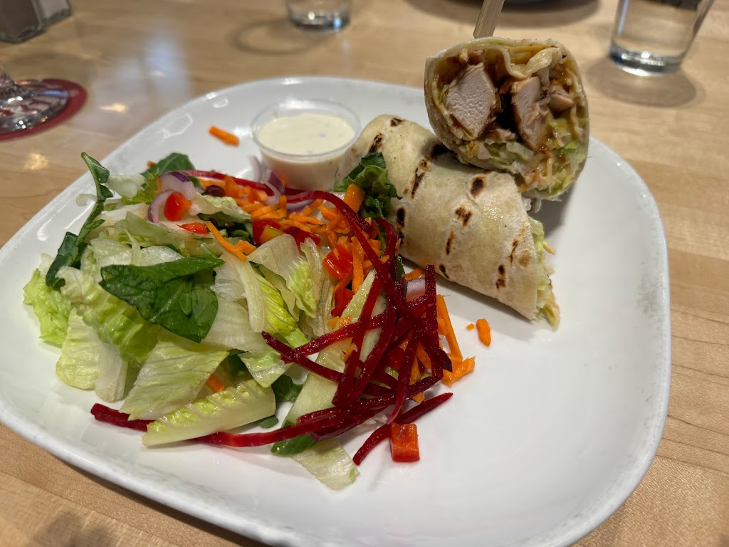 Fresh, fantastic! Excellent service, our server was totally attentive without being obtrusive, friendly, knew the menu, checked in at perfect intervals. Had the fiesta salad - flavourful, delicious; and the Thai chicken wrap (grilled chicken), just a hint of heat in the sweet Thai chili sauce, nice chunks of grilled white chicken and a bit of crunchy noodle. My new fave thing