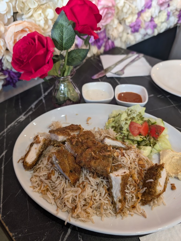 Highly recommend this hidden gem in Uxbridge. If I could give atmosphere a 6, I would 🤙 The Lebanese rice was packed with flavour and they had fried crispy noodles through it. The chicken was cooked to perfection, juicy inside and the coating was definitely their signature mix. It didn't need anything else, well balanced with fresh salad. Also the vibe with heartfelt covers added another layer of appreciation for the experience. I'm sitting here, considering if I should have another meal 😂