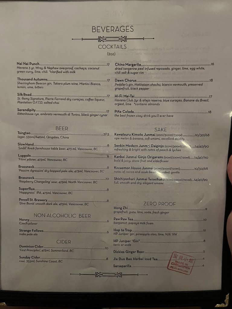 We dined at Bao Bei because it was on several best of Vancouver restaurant lists and the online reviews were great. I would have to say, if anything, all these 5 star reviews were insufficient. One of the best and most innovative restaurants that we have been to. The food, the drinks, the service, the dessert - not a flaw. We did not leave a morsel of food on any plate and only decorum prevented us from licking the plates.