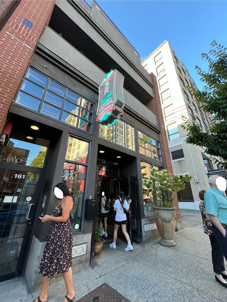 No high chair for children. A first in vancouver! And a discrimination if you have a stroller you will be located on the outside terrace, shameful, (people like us without reservations are installed inside) Ive never seen that, we waited 30 minutes in front and were the first, we find ourselves outside in the street with the drug addicts watching us eat