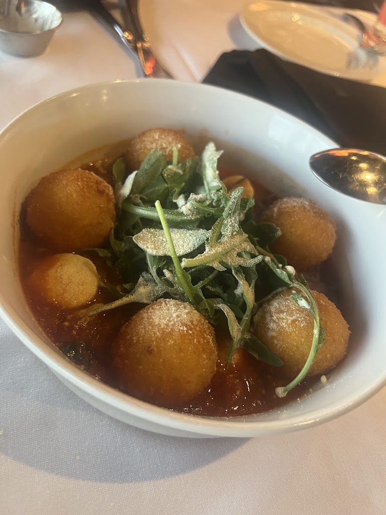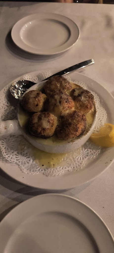 I want to start my review with our server Sergio. He was incredible. Top server Ive ever had ever and big factor on enhancing our overall experience. Great atmosphere. Food was just ok overall. We started with the baked scallops and some panko cheeseballs. The scallops were Devine and I wish I could say the same for the cheeseballs. Very blunt, very boring. For mains, we chose the lamb shank which was tender but poorly seasoned. Ive had better lamb shanks at donair restaurants...we also ordered bacon sautéed brussel sprouts and sautéed wild mushrooms. Both were just ok. Overall was a fabulous night but definitely overpriced. At those prices, food should be better.