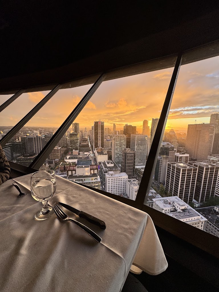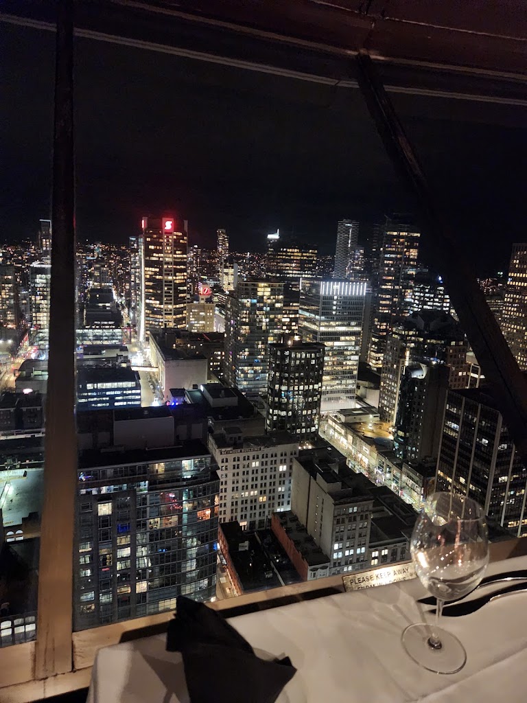 My dining experience at this restaurant was outstanding. The highlight of our visit was undoubtedly the view of Vancouver, which is absolutely priceless and a must-see for anyone visiting the city. The food was good, but what made our evening truly special was our server, Peter. He was incredibly kind, attentive, and personable, making our time there even more enjoyable. His exceptional service and friendly approach were a true highlight. If you re in Vancouver, this place should definitely be on your list!