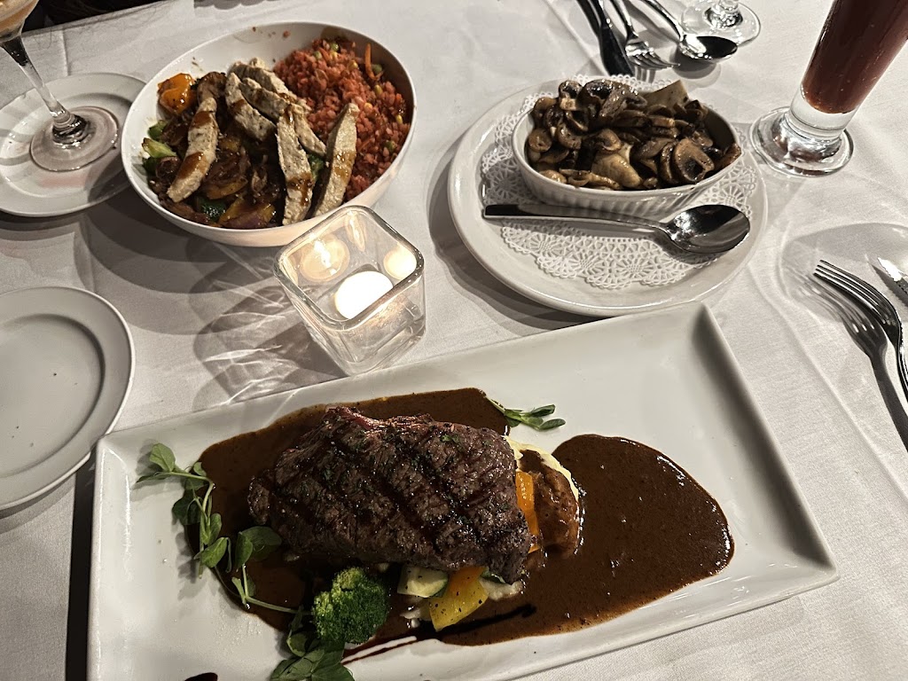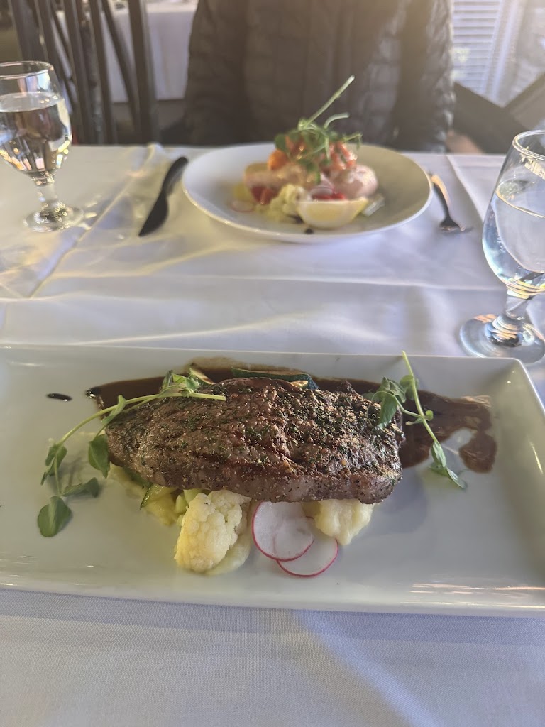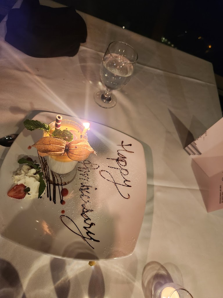 We went in the spring. I recommend booking at 8am (last time) to experience the view in daylight and after dark. As a starter, order the bread basket, super tasty and warm with a side of olive oil (aside). Main course New York Strip (if meat) and lasagna (if pasta). Both were tasty. And to finish, lava cake (petit gateau). We were attended to by Alisa, who was super attentive and friendly.