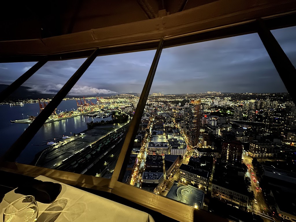 Visitor from Toronto: We recently visited this restaurant on our family vacation in Vancouver , and while the overall experience was enjoyable, it was a bit of a mixed bag. The highlight was undoubtedly the breathtaking views of the city from above—watching the skyline and landmarks slowly rotate was truly spectacular. The atmosphere was elegant, and the service was attentive and professional. However, the food was somewhat underwhelming; it was passable but didn't quite match the high expectations set by the setting. Despite this, the stunning vistas make it a memorable outing, ideal for special occasions where the view is the main attraction.