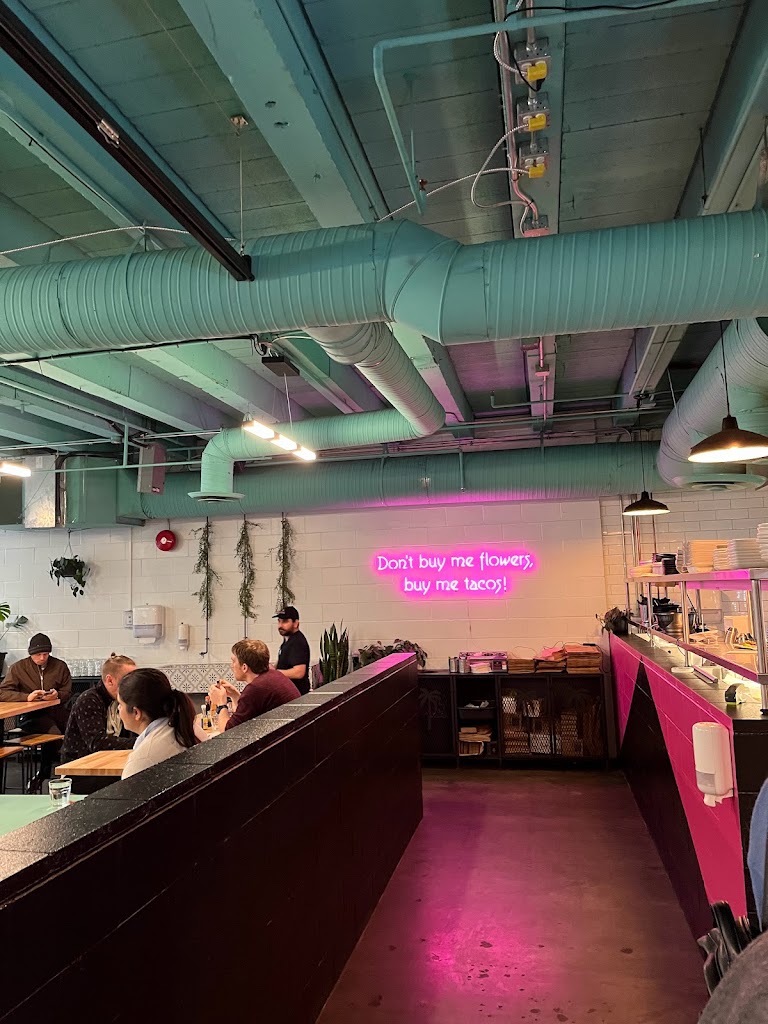 The food did not live up to expectations. I visited for their Tuesday special and ordered the Alambre Rib Eye, Pescado Frito, Spicy Chicken Karaage tacos and Nachos. The Alambre Rib Rye tacos were very dry, stale and lacked flavour. The chicken in the Spicy Chicken Karaage tacos were mostly breading, wasn t served hot and lacked flavour. It was clear that they had been sitting out for a while and definitely wasn t fresh. The Pescado Frito tacos were decent but I ve had much better fish tacos at other places (like Tacofino). The nachos weren t anything special and the beans were stale, giving it a weird texture. I did not feel like it was worth $17 at all. They also got one of my friend s orders wrong but we didn t ask them to remake it. Disappointing experience, I likely won t be back.