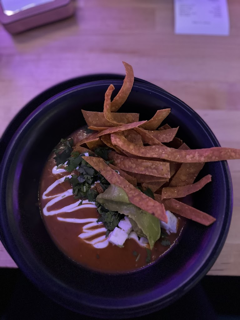 The chilaquiles were delicious and the pastor taco was delicious, the tortilla soup 10/10, the portions are quite large