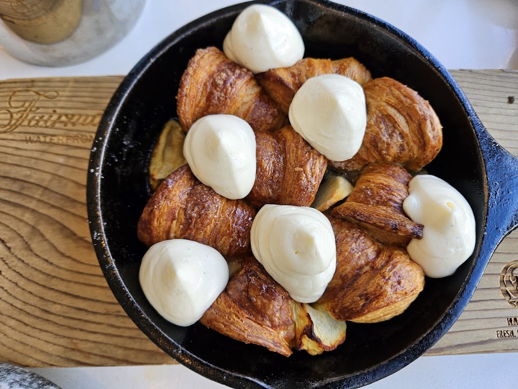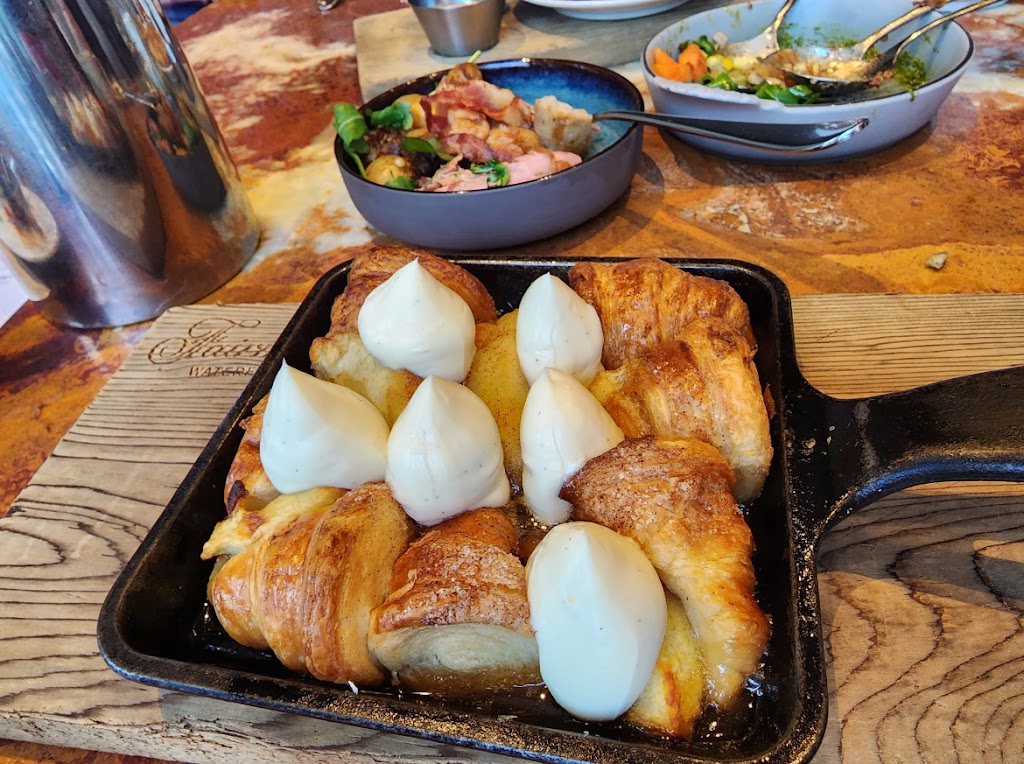 Had a great time trying out their AYCE weekend brunch. We ended up having 12 dishes and a complimentary dessert between the two of us. Loved the Ooey Gooey Skillet (croissant baked skillet with seasonal compote) and Short Rib Fried Rice the most. Would definitely go for second if I wasn t so full. Service was excellent. Our server was friendly and fun. Food came out at a appropriate pace so didn t feel rushed. Tips for people planning to try the AYCE weekend brunch: Go hungry, wear loose and comfortable clothing, pick a nice sunny day to go so you can walk around Waterfront to burn off all the calories, and most important of all, go with someone who loves food as much as you do.