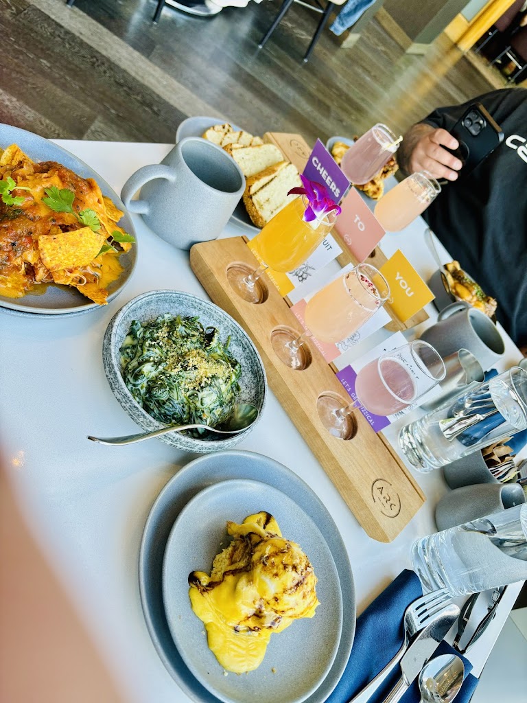 This review is for their AYCE Weekend Brunch for $65/pp. Pro-tip: make sure you make a reservation in advance , booking system is via Opentable. We were promptly seated according to our reservation time. Greeted by our server and provide a run down of the inclusions. I had been previously but it had been a few years since. Food: I felt there was enough variety, though a lot of the dishes included some component of an egg. As it is bottomless, we opted to try as many dishes as possible (keeping in mind to limit food waste). Quite liked the Spicy Buttermilk Fried Chicken (not spicy tho but that s okay), Roesti, and my fave was the 6 bone marrow with side of scrambled eggs and sourdough toast *drool*. Drinks: Comes with bottomless coffee or tea. My guest opted for the $24 mimosa trio flight which she enjoyed. Service: Food came surprisingly quick! I m sure these dishes are half prepped in the back but I m fine with that considering it is AYCE. Our server Saori was attentive (topped up our bottomless coffee when it was looking low), checked in on us frequently, asked if we wanted to order anything else and did so without judgment (I ate a lot haha). Atmosphere: Nice, bright space. We were seated window side low tables and had a decent view of the waterfront and Vancouver sign by the convention center. All in all, would I come back? For the value, yes. For ayce? For the sake of not putting on too many pounds over the holidays, prob will give it some time. Haha