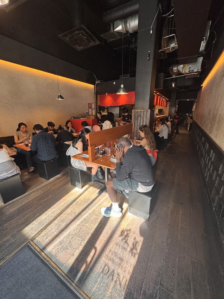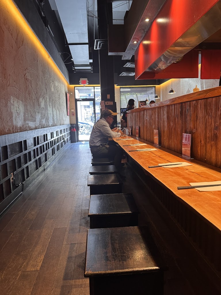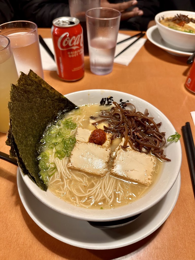 Bustling ramen bar famous for Tonkotsu. Delicious noodles, unparalleled in the city. Expect to wait 30 mins or more for seating Vegetarian options: Vegan ramen available