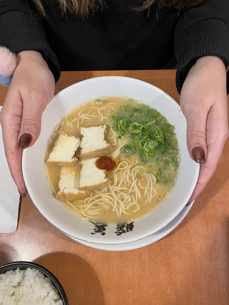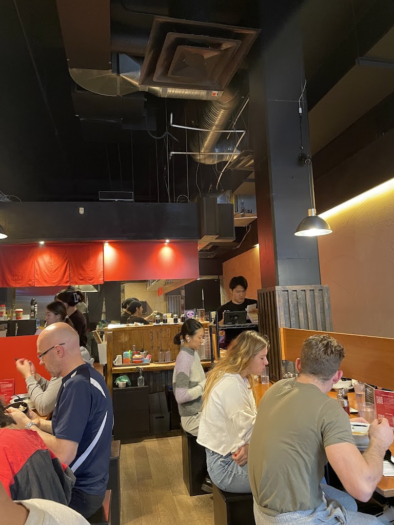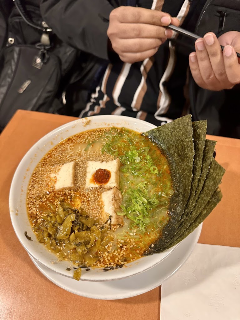 A small ramen joint selling Fukuoka-style Japanese ramen. Space is limited so there is always a line up outside during busy hours. Prices are around $12 if you just get the normal ramen and it comes with two pieces of pork. You can either get a vegan or pork-based broth. You can also customize noodle thickness, soup thickness, etc. to be more customized to your taste. You can add boiled egg, and Karaage, gyoza, and other items for additional fees. Worth it if the line up is not super long.