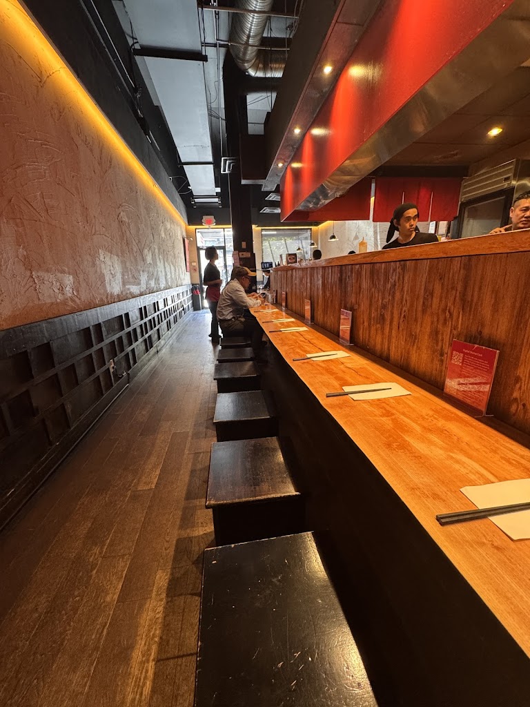 Potentially I am biased against this place as I dont particularly find hakata style ramen to be that good. The ramen is good, its executed well, and is maybe on par with or better than ichiran. The problem is ichiran is also kind of middle of the road as well. It is one of the better options in Vancouver, but if you are at all familiar with the ramen available in Tokyo youll probably be disappointed. The main downside for me is just that you almost always need to line up. If you happen to be passing by and there is no line its worth it but otherwise I think you are better off stopping by one of the other nearby shops.