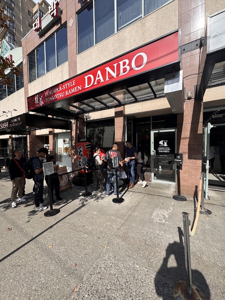I visited Ramen Danbo on Robson and waited about 30 minutes to get in. The line moved faster than I expected, but timing is key if I had arrived a bit later, the wait would have been much longer. I ordered ramen and a side of rice, and surprisingly, the rice came out first. When the ramen arrived, it was so delicious that I forgot to take any photos! I usually avoid places with long lines, but the flavor of the ramen makes me want to return though I m hesitant about the wait. This is a fast-paced restaurant focused on turnover, so it s not the place for a leisurely meal. However, the staff didn t rush or pressure us at all. For authentic Japanese ramen, this place is unbeatable. Highly recommend it!
