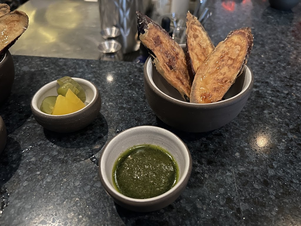 Wonderful drinks and bites. I would come again, even if it s just for the cocktails