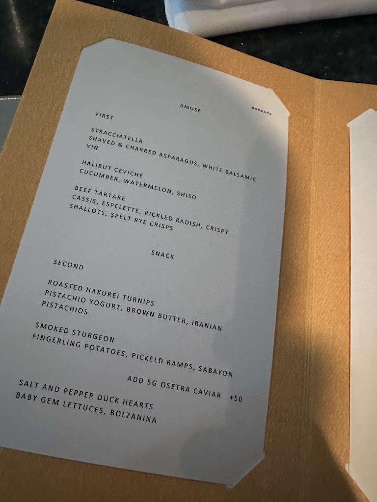 It was just perfect and delicious. We went there for my birthday dinner. The staff is super nice and friendly. It was just extraordinary experience. Barbara doesn’t reveal all its magic on the printed menu—unexpected little bites between courses surprise and delight, building anticipation throughout the prix fixe experience. Their dish shines, but the beef dish which they just introduced yesterday only stand out as personal favorites. It was a pure magic.