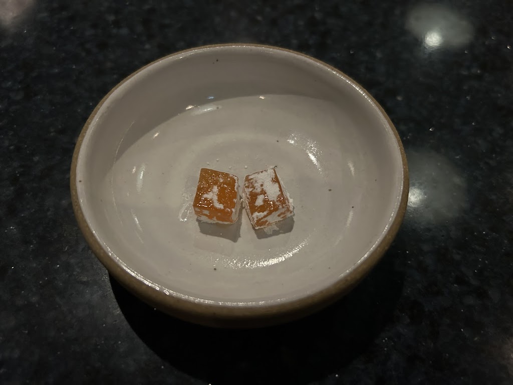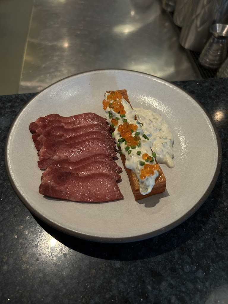 The menu is set up in three principal parts with three items available in each part. The diner selects one option from each section and there are a number of additional snacks provided. We ordered different items and shared them. From the First, we split the Stracciatella and Tuna Niçoise. I think I favoured the straciatella slightly over the niçoise but it was prepared in a really creative manner. In the Second, we split the Veal Tongue and the Scallops. Both dishes had small elements that were hella moreish. The potato pavé on the veal tongue was a precious morsel while the lemon honey on the shishito peppers with the scallops was a delicious treat. For Third, and finale, the Arctic Char and the Duck had our number. The char had the impossibly perfect, crisp skin that paired so well with the accompanying hummus. It definitely was both of our favourites. The meal overall left us feeling sated but not overly full and we definitely had come across new food combinations and ingredients which is always a treat. It’s definitely a meal I would recommend to everyone.