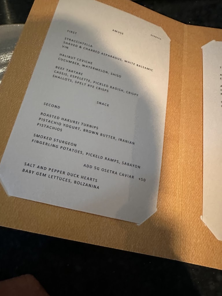 A truly fantastic experience, from the ambiance, to engagement, to each thoughtfully crafted dish.