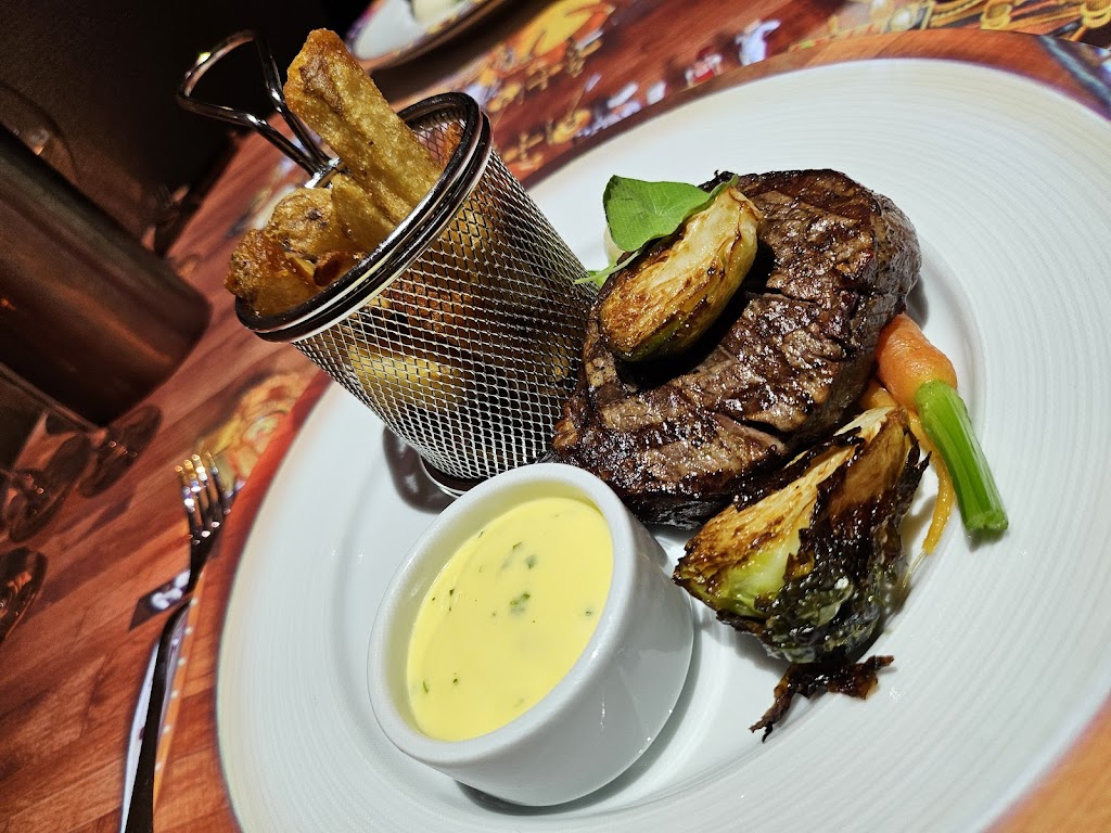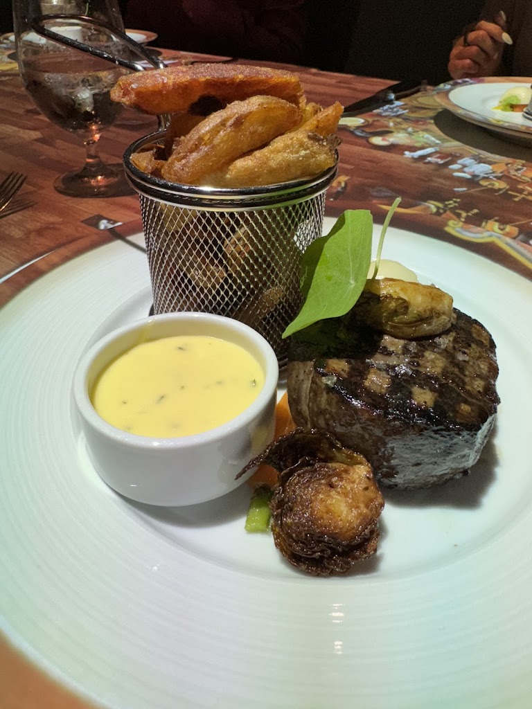 Best well-done steak Ive ever eaten in my life. Ive never order a well-done steak in my life and I would never but this restaurant does not give you a choice lol. For a french themed restaurant, I think its rather disappointing. The food looks great it terms of presentation and not to mention the animation of le petit chef was fun and entertaining. However, setting a price of $180++ per person plus a 21% fixed gratuity, one would expect a much better food quality and service. Also, Id like to note, if youre charging 21% for gratuity, maybe you should train your staff to pour the soup property instead of all over the plate. I witnessed one of your staff pouring the soup all over the plate and one of the guests meal had to be completely replaced lol. Overall, I would never do this ever again. Id rather go to a much better restaurant to enjoy a meal than spend a dime here. Good animation though.