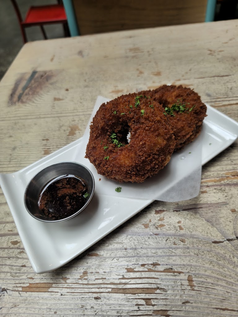 Made a reso, and were seated immediately but had to flag down a server after no one came to the table for 20mins. The server who ended up taking care of us was super great (our seat was not in her section) but the Mac and cheese doughnuts were frozen in the middle. Overall just an okay experience, not sure if I would recommend it