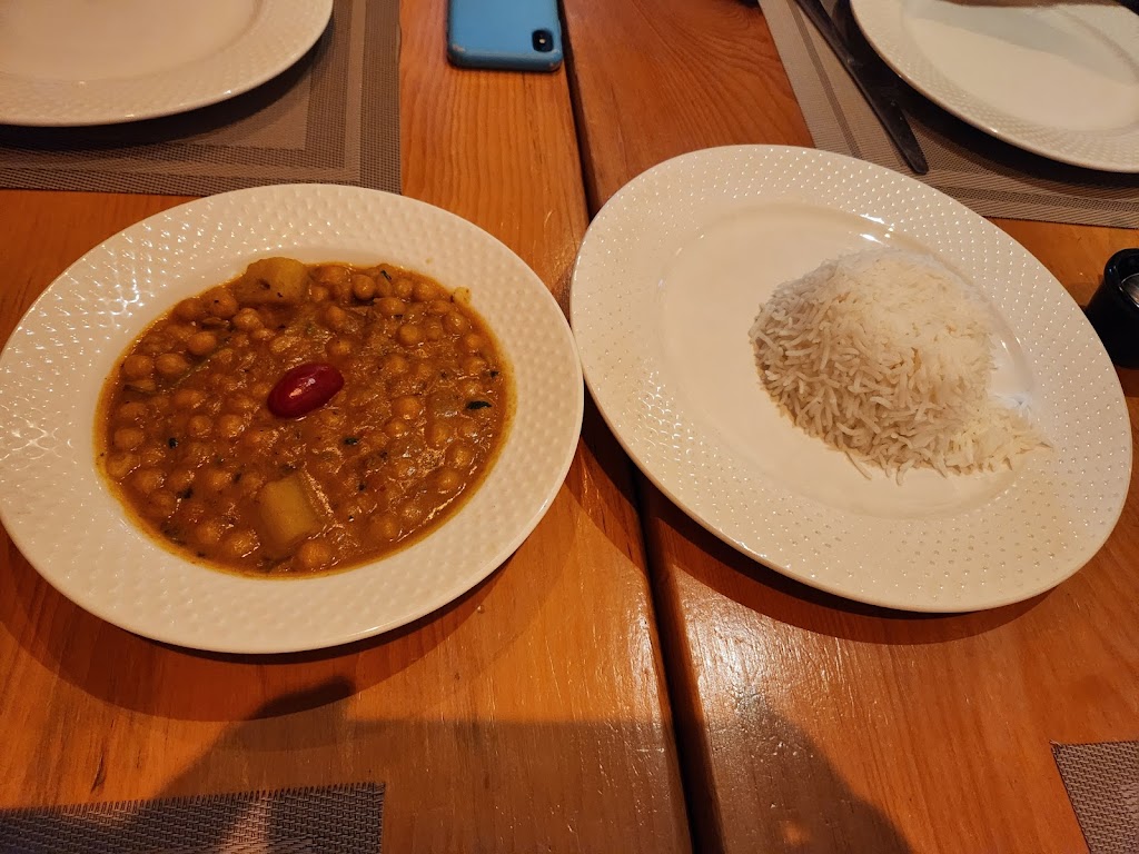 Vegetarian options: Mixed Vegetable Curry, Dhal Curry. Food