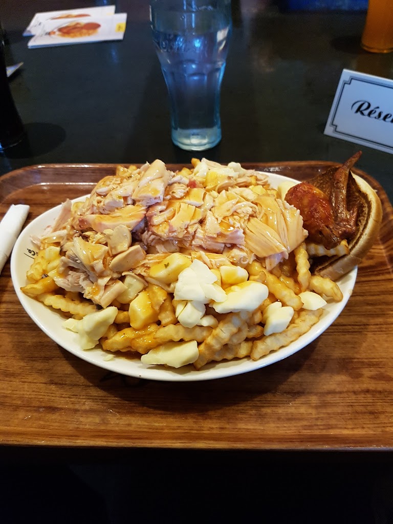 I went to the car order for two chicken poutines...after the 42 chicken options I specified that I wanted the breast with the wing for both...$33 I arrived home for both poutines, pieces of poorly cut white and pink chicken with hard bread.... never again to this benny.. its over good job