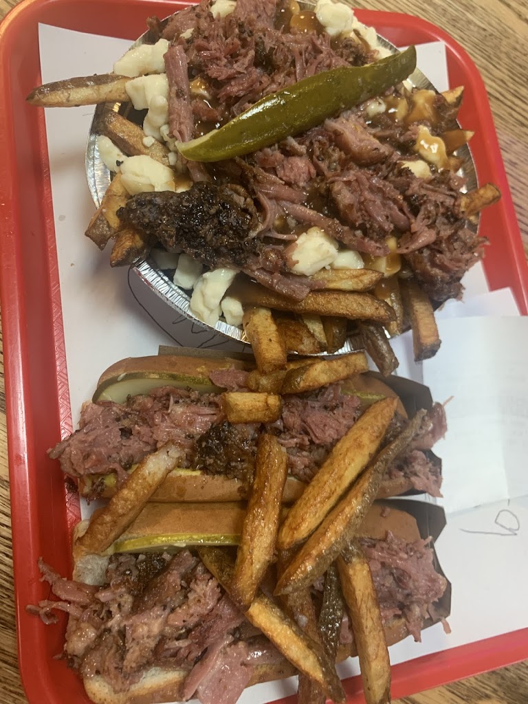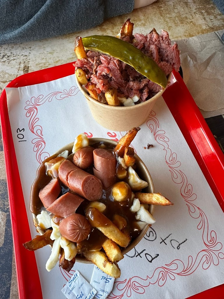 We had the smoked meat dogs and smoked meat poutine. Both were delicious lots of meat. Happy we ended up stopping here, would for sure go back. Great food, service and prices