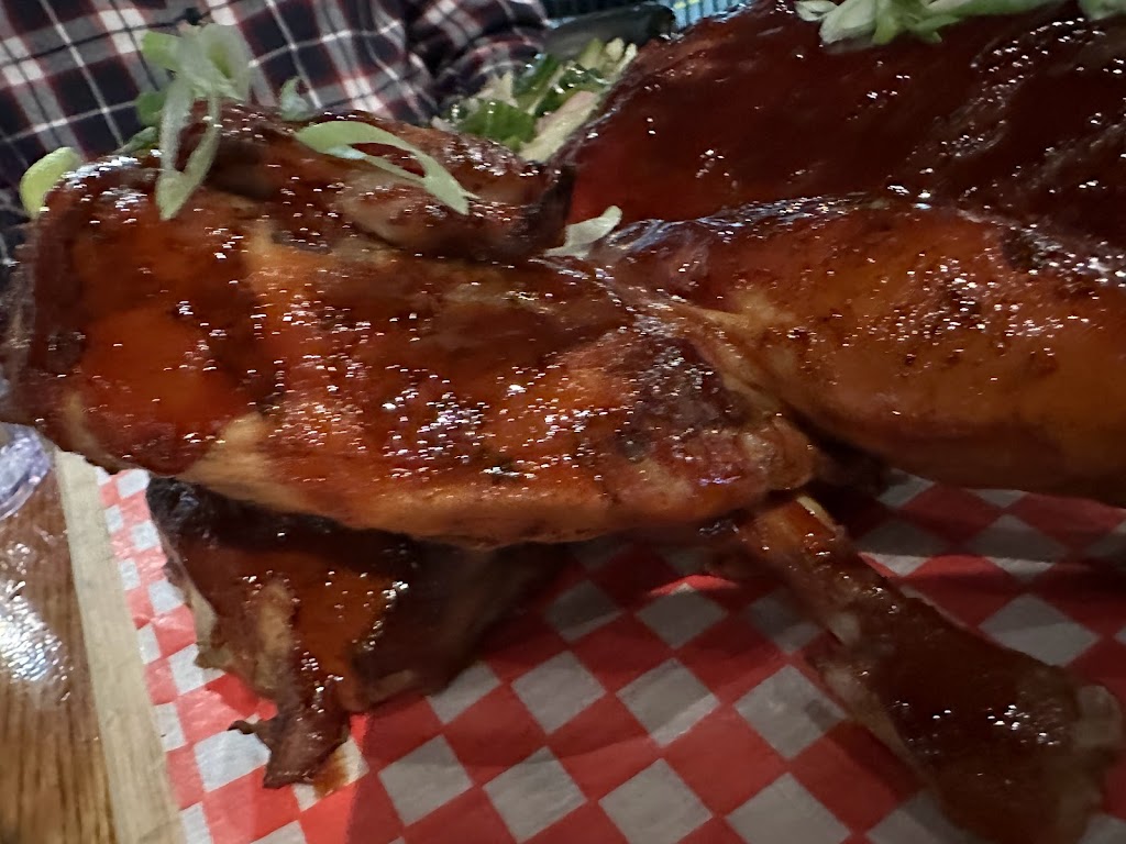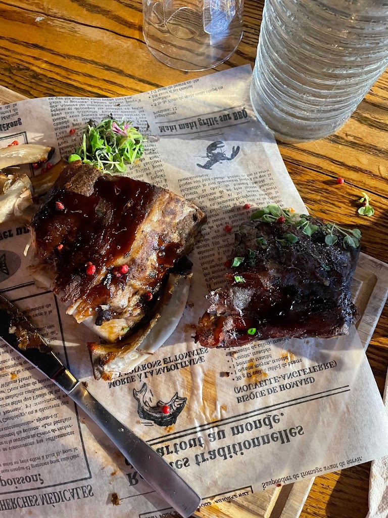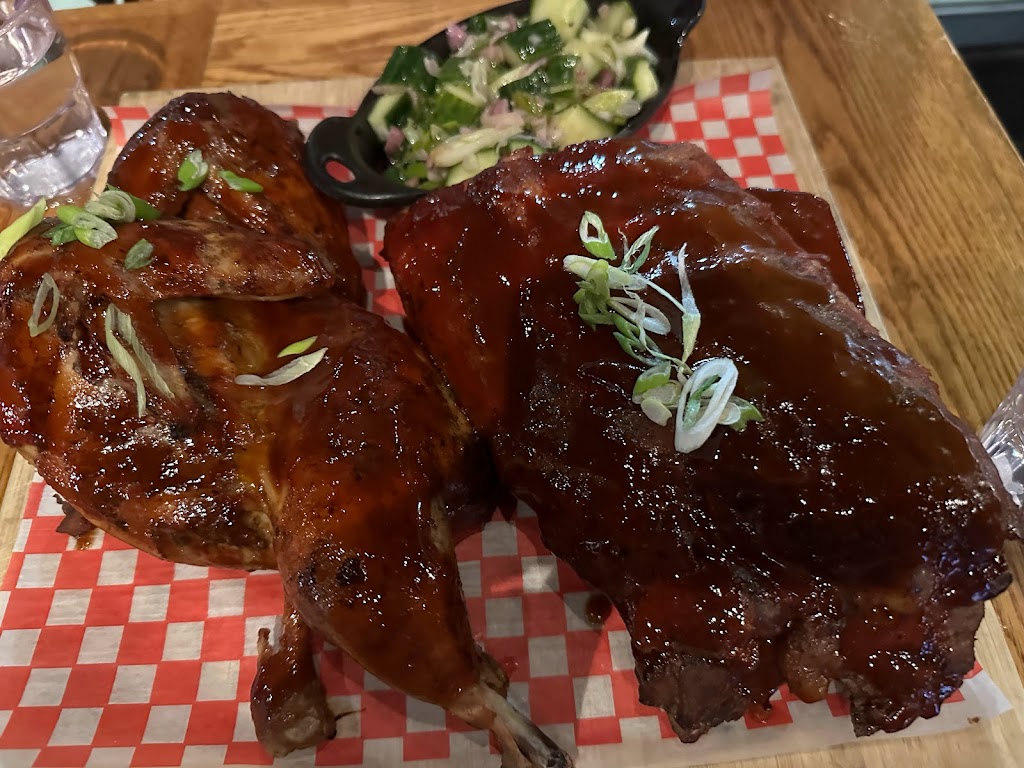 We ordered and shared the « family » platter with whole ribs and chicken. The meats were smoked lightly. The ribs were very lean and tender. It came with cucumber salad, which was refreshing and fresh. The service was excellent. It would be nice if they could provide wet napkins for the mess of eating the ribs, otherwise everything was enjoyable.