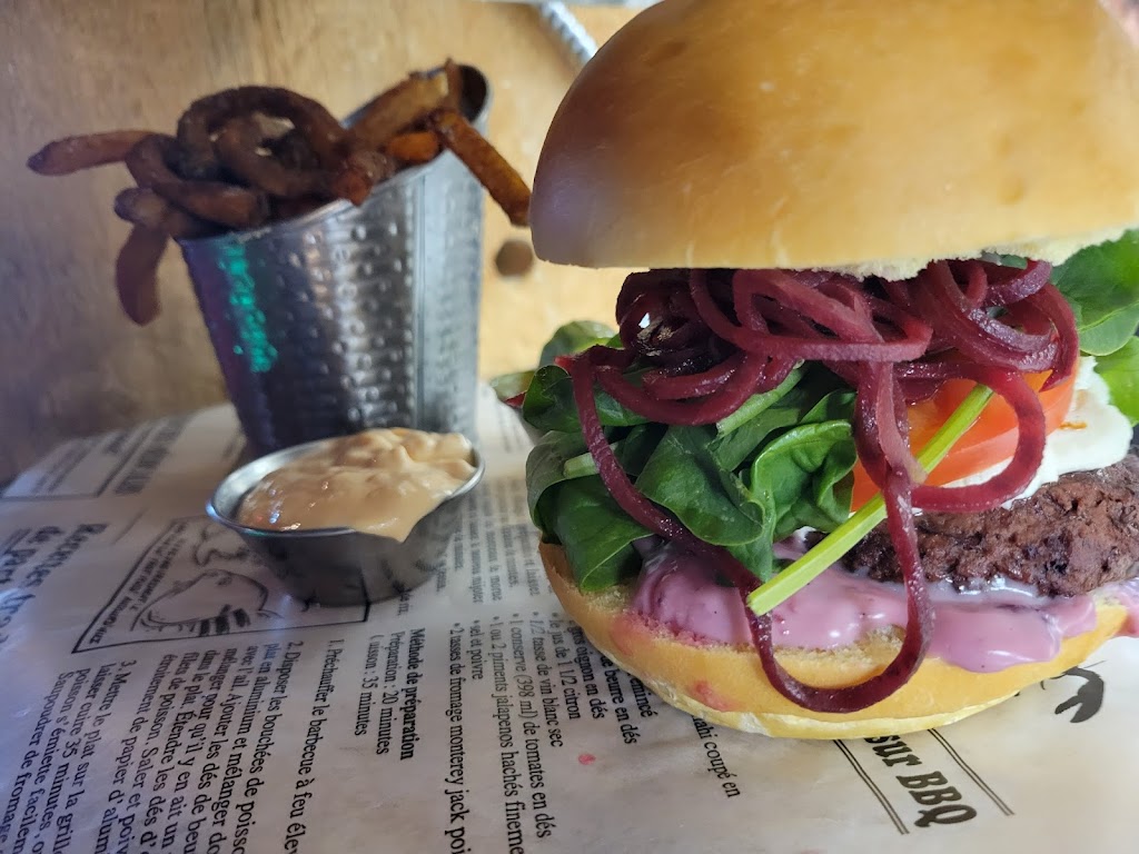 Jack Saloon focuses on cuisine inspired by Nashville and the American South, with greater emphasis on Tex-Mex ingredients. For example, the beef tartar is now served with marinated onions, buffalo sauce and marrow bone for carnivorous flair, while the salmon tartar is topped with nachos. An expanded offering of shareable appetizers and vegetables now includes corn ribs, roasted broccoli with ranch sauce and dynamitas made with strips of spicy green bell pepper rolled in a pastry topped with cream cheese and cheddar, then deep-fried. My wife and I had the delight of trying two of the restaurant’s top-rated and most highly recommended burgers. The first was the “The Australian Stockmen” burger, built on a soft, pillowy brioche bun. At the heart of this burger was a juicy, hearty beef patty topped with a tangy spread of goat cheese. The zesty pop of pickled beets added an unexpected bite, balanced by fresh spinach, ripe tomatoes, and sharp red onion. But the pièce de résistance was the blueberry mayo, lending a sweet, fruity contrast to the savory layers. The result? An explosion of unconventional flavors that melted in my mouth. It was a strange yet deeply satisfying combination, like nothing I’ve ever tasted before in a burger. The second burger, “The Crispy Avocado-Ranch Chicken,” was equally impressive. Served on a toasted sesame seed bun, this burger featured a perfectly breaded chicken breast with a crispy, golden exterior. Cool, crisp iceberg lettuce and juicy tomatoes provided a refreshing contrast, while jalapeños delivered a fiery kick. What set this burger apart was the creamy, indulgent avocado-ranch sauce, which added a smooth, rich finish to every bite. This unique flavor combination gave the burger an air of sophistication and truly set it apart. Both meals were accompanied by a generous serving of succulent, perfectly cooked house fries, crispy on the outside and tender on the inside. Each fry was golden-brown and seasoned to perfection, achieving that delicate balance of crunch and fluffiness that can only be described as heavenly. Paired with a side of rich, spicy mayo for dipping, the fries offered an irresistible combination of heat and creaminess, elevating this classic side to a whole new level of indulgence. Jack Saloon’s burgers are expertly crafted, blending premium meats, inventive toppings, and top-notch ingredients to offer an unforgettable dining experience. Whether you’re a devoted burger lover or seeking something out of the ordinary, Jack Saloon delivers a mouthwatering meal that impresses you with both its bold flavors and striking presentation. To quench your thirst like a saloon frequented by the cowboys of the American West, Jack Saloon is a place where you arrive early after work to drink a beer, eat and unwind, and where the evening ends very late. In a nod to the days of the Wild West, when cowboys drank a beer after work to quench their thirst and a shot of whiskey to relax, Jack Saloon offers keg beer on special every day from 4 pm to 7 pm, and a free shot of whiskey in a nod to the Boiler Maker. -Tony Medeiros MtlRestoRap