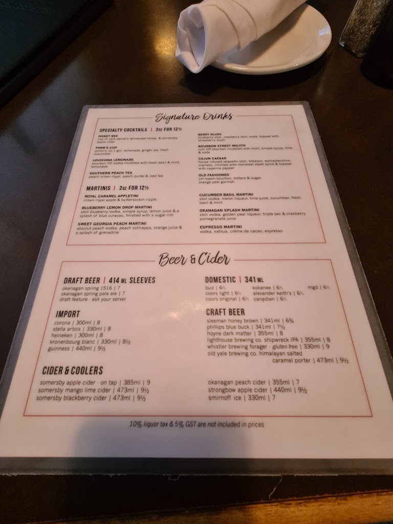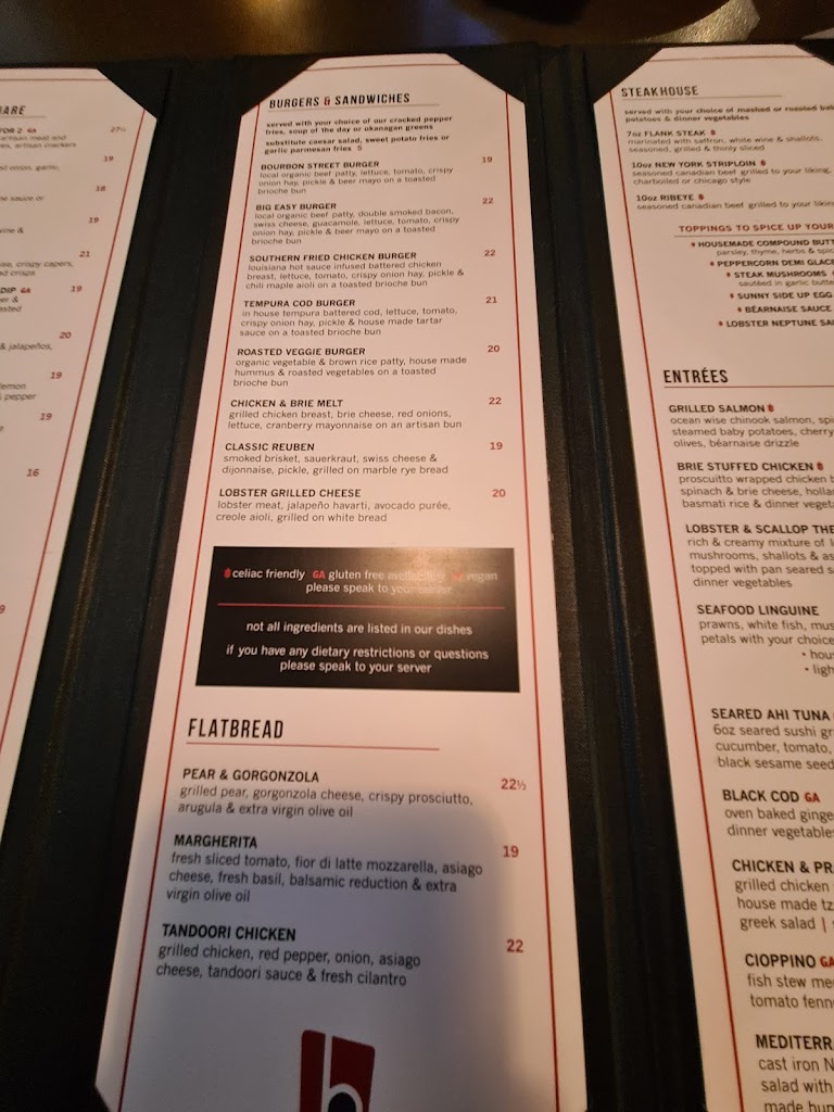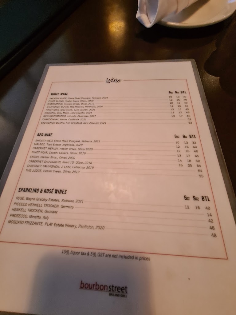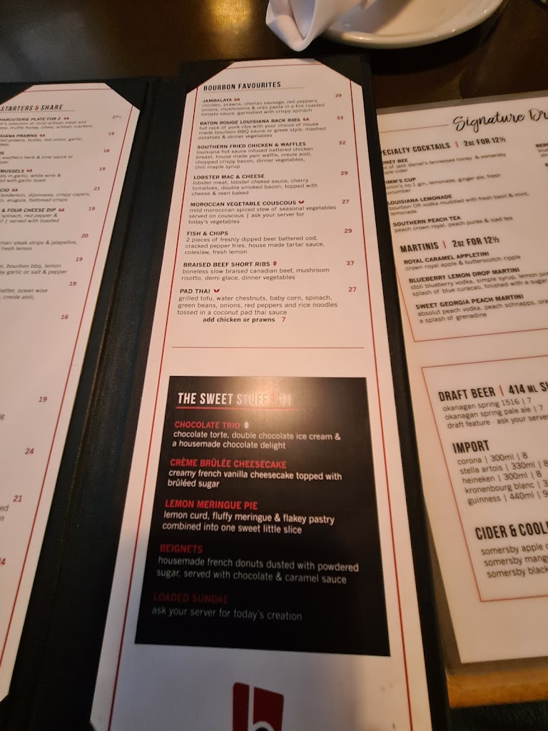 We drove down from kamloops for an afternoon, had a afternoon dinner at bourbon, server was fantastic, good atmosphere, menu is very nice and food was delicious