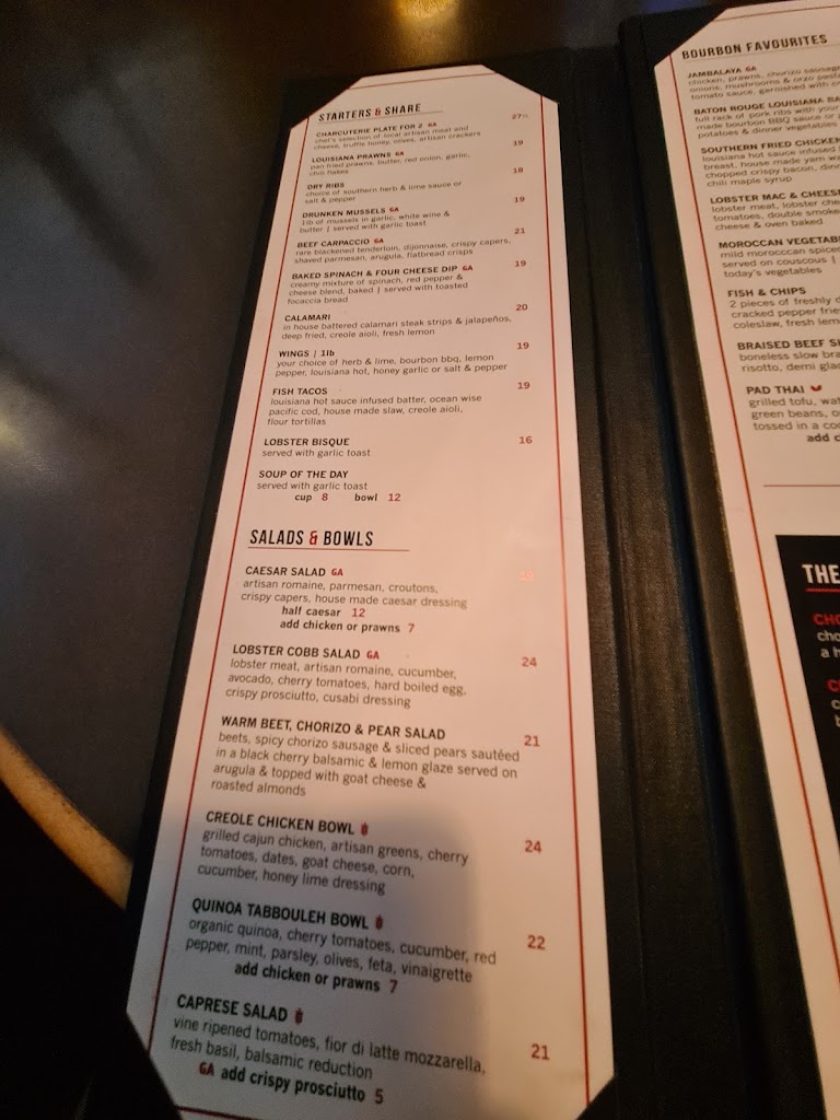 Had a bad visit and will never return. Got the jambalaya and it had no flavour, not spicy at all and just tasted of tomato paste. Service was almost non existent. Prices are very high and the food and service didn t match.