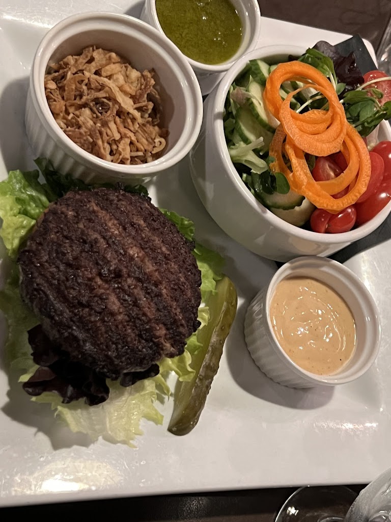 My partner and I came to this place after a day of snowboarding. The servers were all so friendly, and it made for a very comfortable but professional atmosphere. The food was AMAZING! They gave us complimentary bread and lavender butter which was a cool way to start our meal. We got the bourbon burgers and fries which were so juicy and cooked to perfection! They service was fast, and we received a lot of attention. Will definitely be revisiting this spot again when we re back in town!