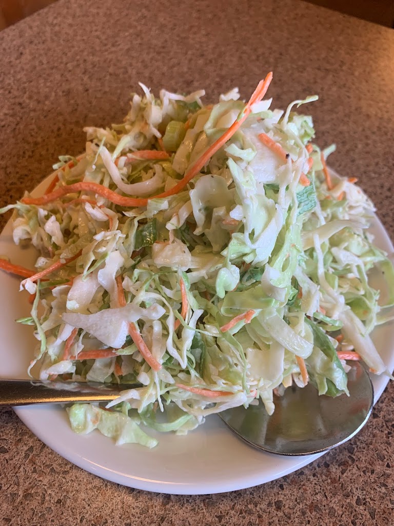 I know this is a fish and chip joint but all ive had here so far is take out coleslaw. Its the best!! Use it with brisket, on a pulled pork sandwich. It goes with so much more than just fish.