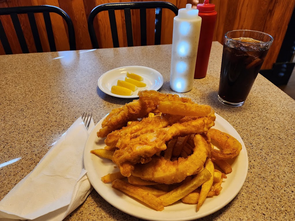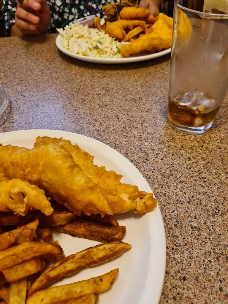 Always a great experience going here for all-you-can-eat fish and chips. Super clean kitchen and lots of space for seating. Staff goes above and beyond to serve your every need. Atmosphere gets 3 because its looking dated. Plenty of parking available for any sized vehicle both on street and in the lot. Take out available for most menu items, and most patrons take advantage of the carry out deals. Ive eaten their wares many times and the food has been consistent for many years. #dontfixwhataintbroke. Highly recommend eating or ordering from here. Parking: Plenty available Kid-friendliness: Great pricing for kids options.