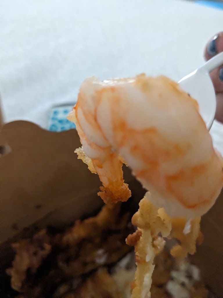 Coleslaw with parsley and what seems like brocolli? The chicken and shrimp tasted like they were fried in at least 2 week old oil. The beef on the Cheese steak was like chewy leather. This was our second time trying hee do not reccomend.