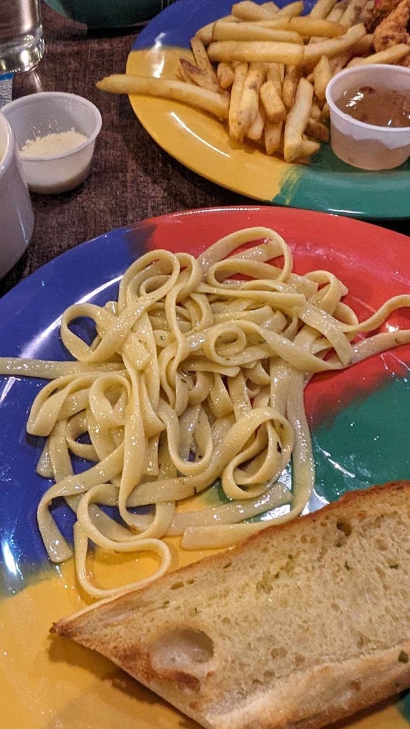 Took quite a while to get our food, and when we did, it was disappointing. My kids didn t even attempt to finish their pasta, and the wrap I had was so dry, and the fries couldn t even be revived with salt or ketchup. Our first time there and unfortunately I don t think we will return. :(