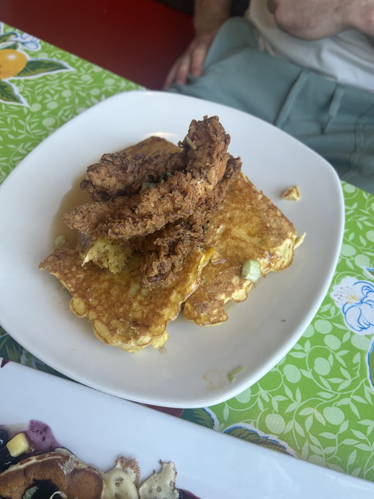 The chicken and French toast dish was delicious. We also got the skillet which was great. Overall, food was good and generous portions. The location is perfect as it is close to the government street and we recommend exploring the cute stores around this area.