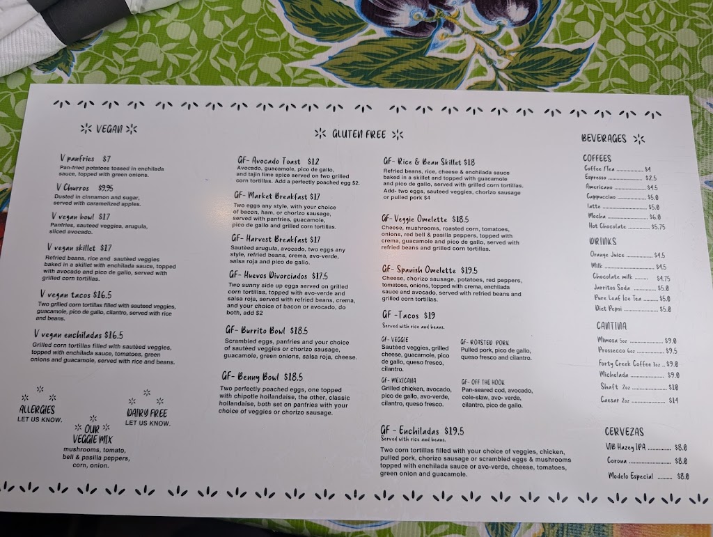 Delicious brunch with a Mexican twist. Sit outside on a nice day.
