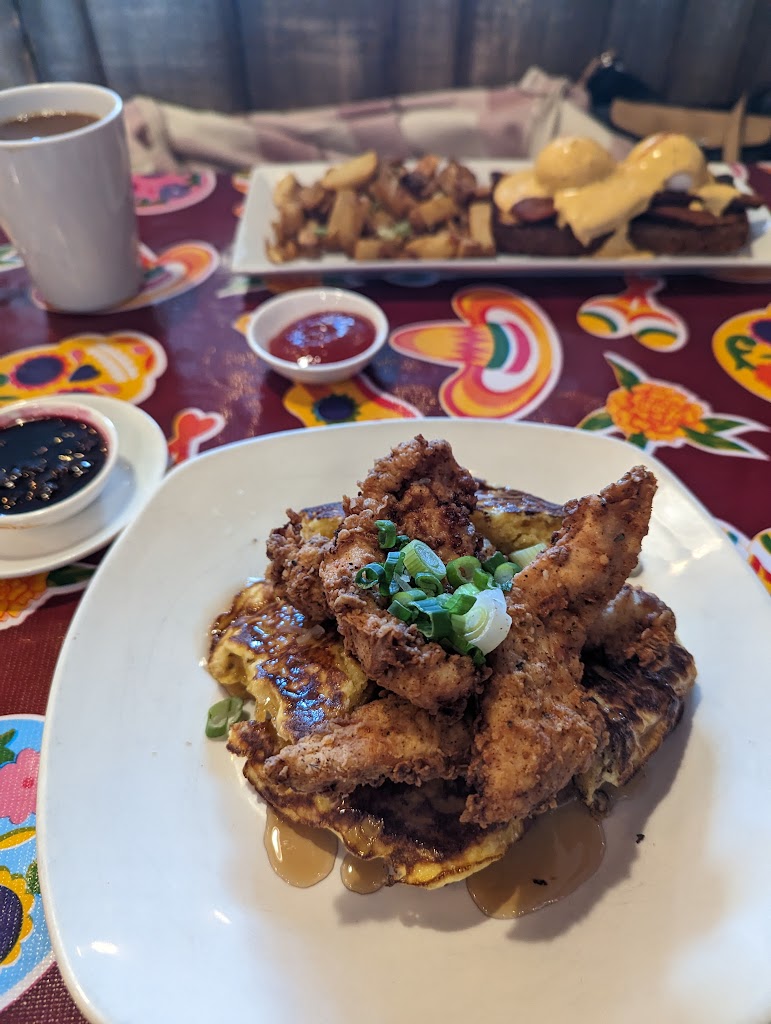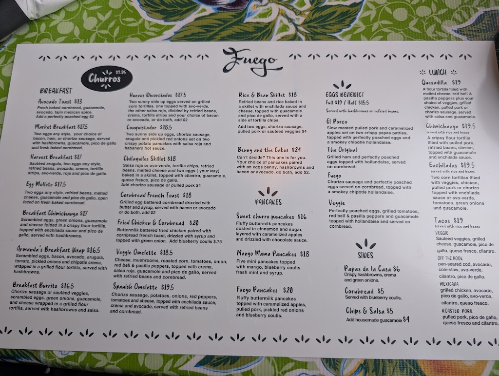 The food here is seriously amazing. We came for breakfast and I had the fuego Benny that comes on cornbread. The cornbread was so buttery and delicious. We also used their Fuego habanero hot sauce that had a great kick to it. 10/10 with great food and service.