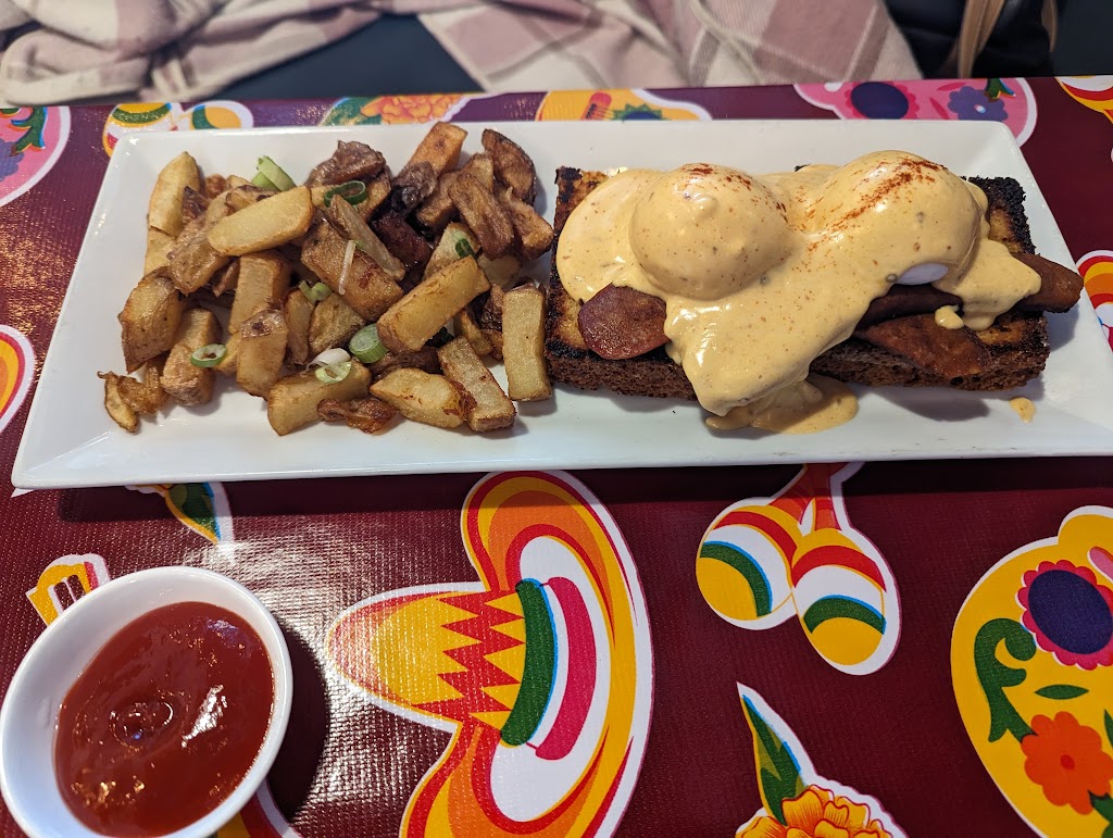 Good for a Mexican themed breakfast and big portions. Minus a star as they must use margarine in their hollandaise sauce instead of butter, so the oily taste is overpowering and sub-par compared to a proper hollandaise sauce made with butter. It detracts from an otherwise tasty and creative eggs Benedict.