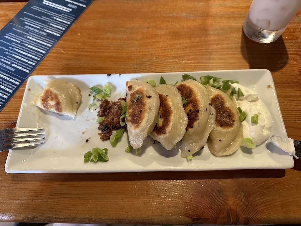 Wanted a pint and a snack. Got a few of the types of perogies and they were all absolutely fantastic. Service was excellent.