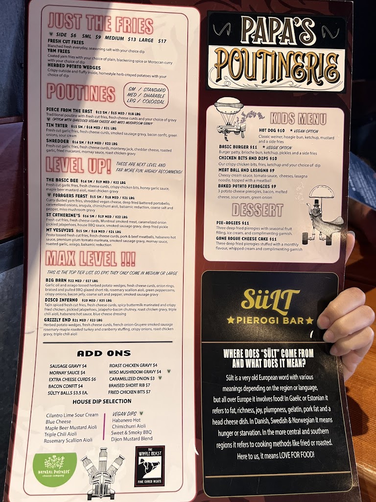 Sult Pierogi Bar has its foundations built on classic Eastern European cuisine but modernized with world flavours and flair. This all leads us defined as New Canadian Cuisine We have the best and most fun pierogi flavours in North America! Not only that we have outrageous burgers, gourmet hot dogs and a poutine menu to die for #PAPASPOUTINERIE