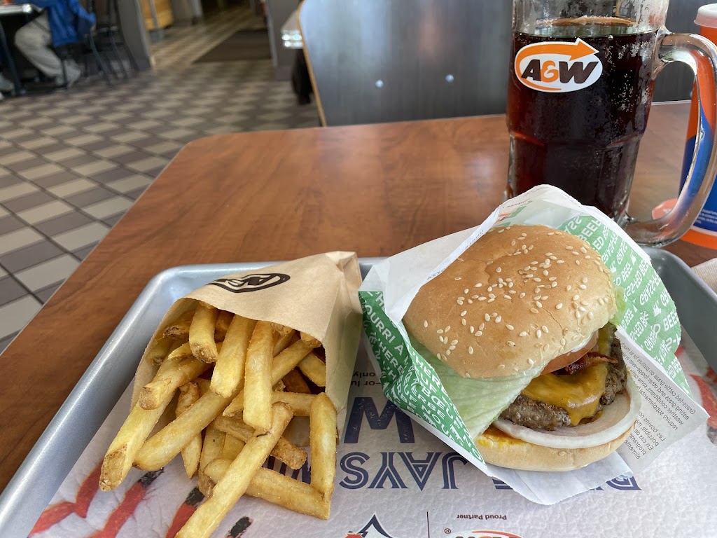 A&W! What can you say bad about A&W? Great burgers. Quick, affordable breakfast, and pretty good coffee. Been around for years for good reason.