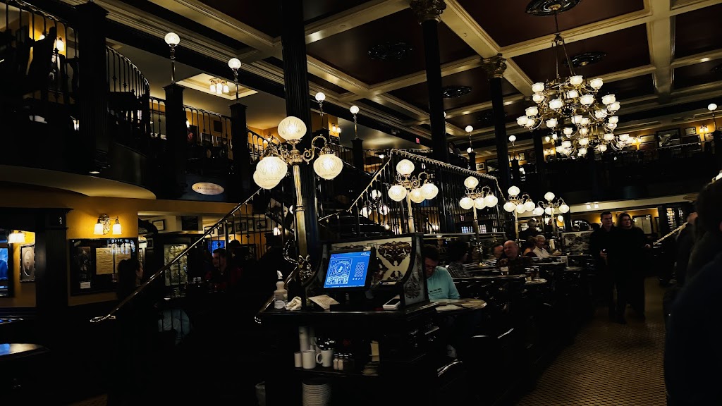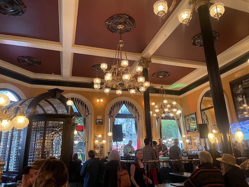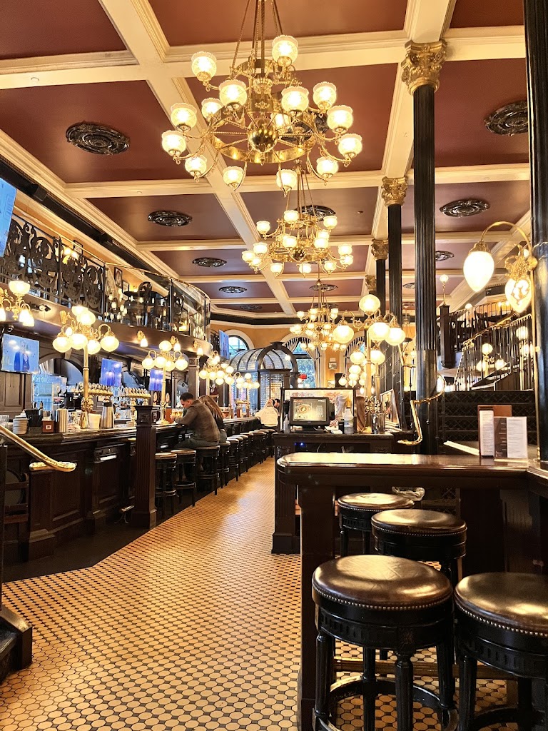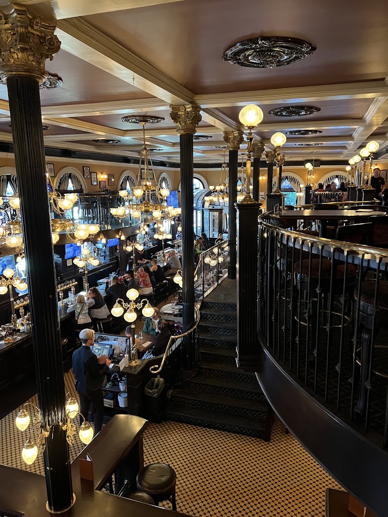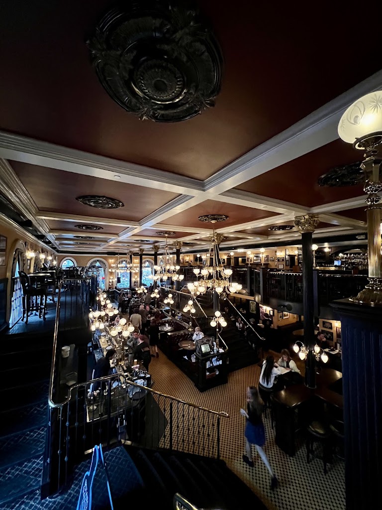 Love the interior of this historic building, especially with the holiday decorations up. They fell flat on service though. Host put us in the snug corner with another small party and none of us saw a server for a good 10 minutes or more. Unsure if the waiter was inattentive or of the host has forgotten to tell her about two parties waiting for service, but this was not peak time and it shouldn t have happened. Aside from that, the fancy coffee drink was nice and the Guinness was perfect. So I guess the lesson is, sit at the bar where staff can see you.