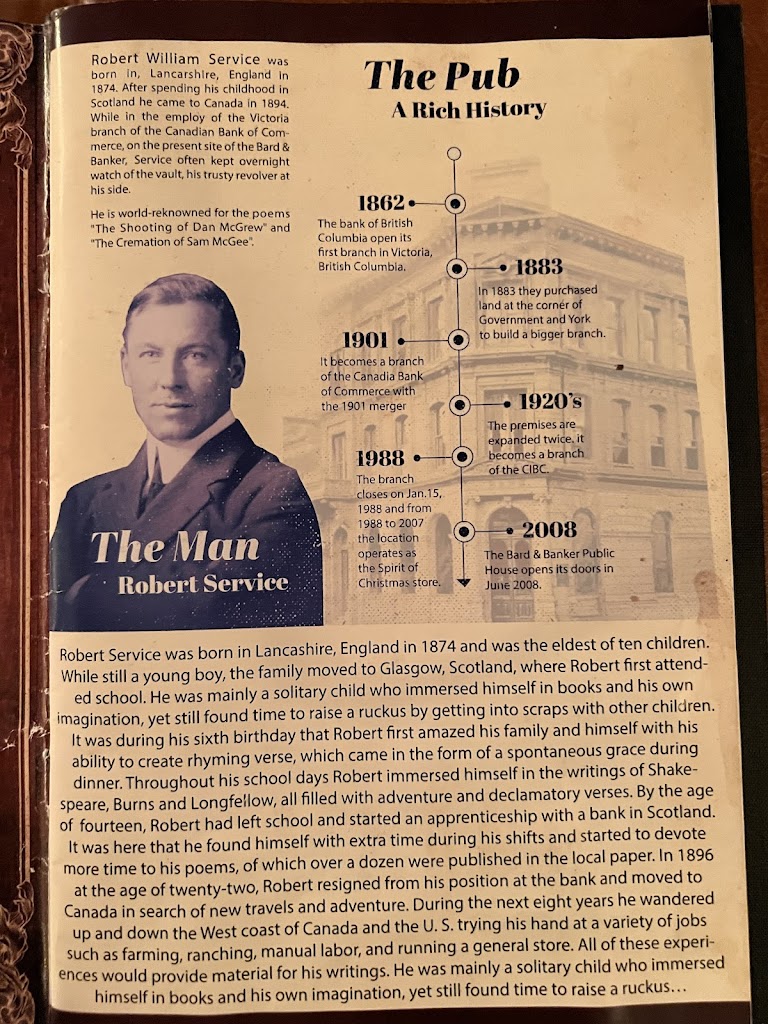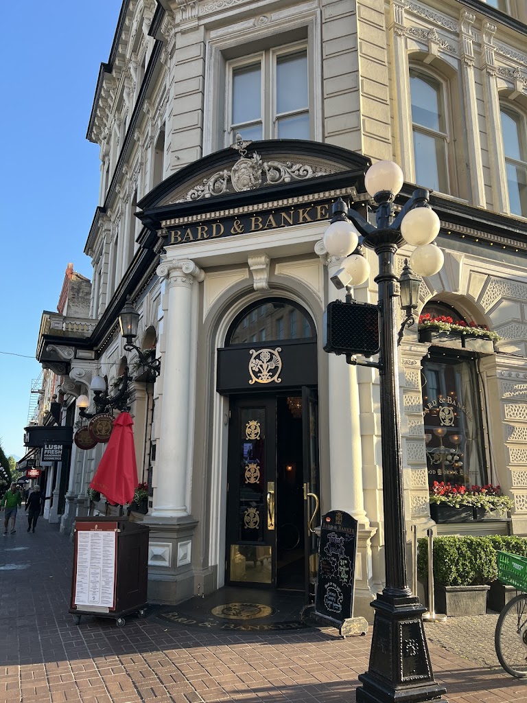 Bard & Banker: A Historic Gem in Victoria's Heart 🏦🍻🎶✨ Stepping into Bard & Banker feels like a magical journey back in time. 🕰️🏛️ Established in 1885 as the Bank of British Columbia, this iconic building carries over a century of history within its walls. 📜✨ Fun fact: the renowned poet Robert Service, known as the "Bard of the Yukon," once worked here, adding a literary charm to its legacy. 🖋️📚 The interior is absolutely stunning! 😍✨ With opulent chandeliers 💡, polished wood finishes 🪵, and intricate brass details 🛠️, it exudes Victorian elegance from every corner. The live music 🎸🎤 fills the space with energy, making it both a feast for the eyes and ears. Whether you're sipping on a drink 🍹 or soaking in the ambiance, it feels like a step into a different era. 🕺🎶 When I visited a few months ago, the friendly and attentive staff 👏😊 made the experience even more delightful. The menu was filled with mouthwatering options 🍴🍔, and the impressive selection of local craft beers and premium imports 🍺🍷 was a true highlight. Everything we had was delicious, adding a perfect culinary touch to an already unforgettable evening. 🍽️✨ Whether you're a history buff 🏛️, a foodie 🍝, or just looking for a fantastic night out 🌙✨, Bard & Banker is a must-visit spot in Victoria. I can’t wait to return and soak in more of its rich history and vibrant atmosphere! 🎉🍻🎶✨