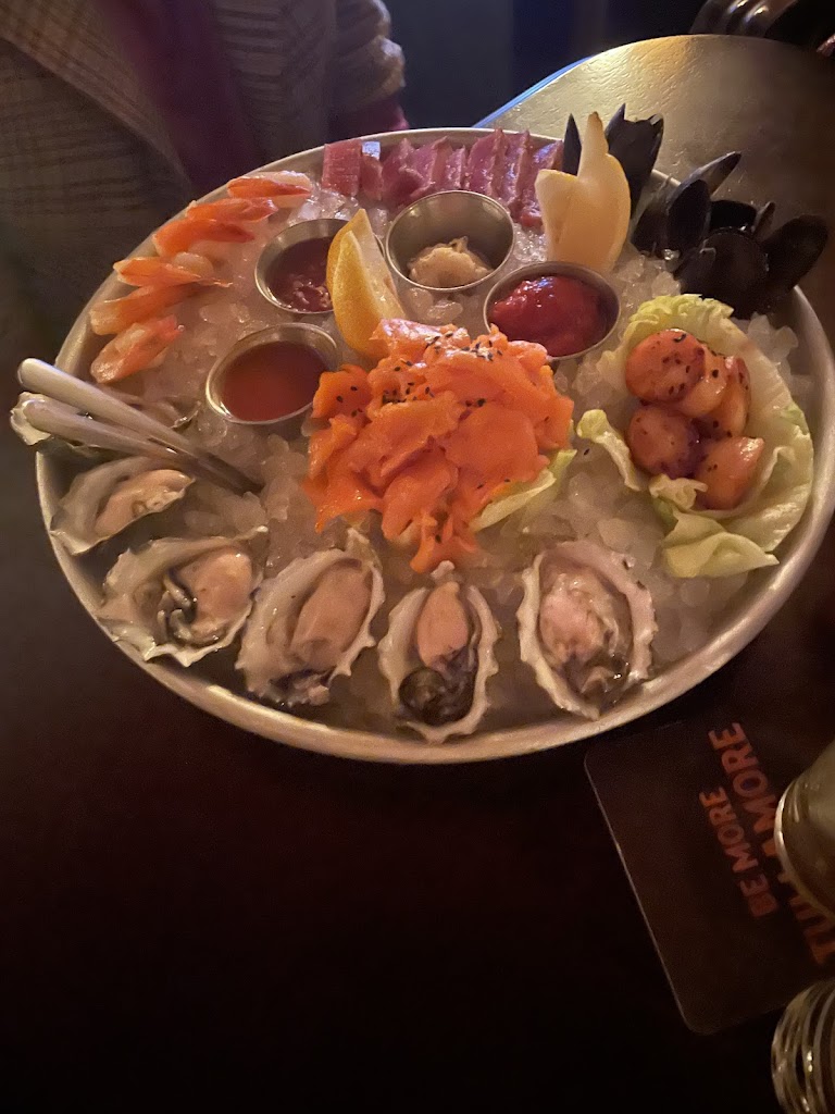 Six of us booked a table on the open upper level to enjoy the live music and dancing Friday night at the Bard and Banker. I have been there at least four times on a weekend night to listen to live music and do some dancing. There’s a mix of ages, and I would say all are comfortable – the music would be more 80s 90s than current techno pop. (Which is good). As you will discover, the decor is spectacular being a refurbished bank with many original fixtures. It gets decorated for different seasons also. We sampled the menu but the highlight was the Taste of the ocean for two people for $59. A huge platter of fresh seafood, that was very well prepared. Our server was excellent and kept up with all our orders.