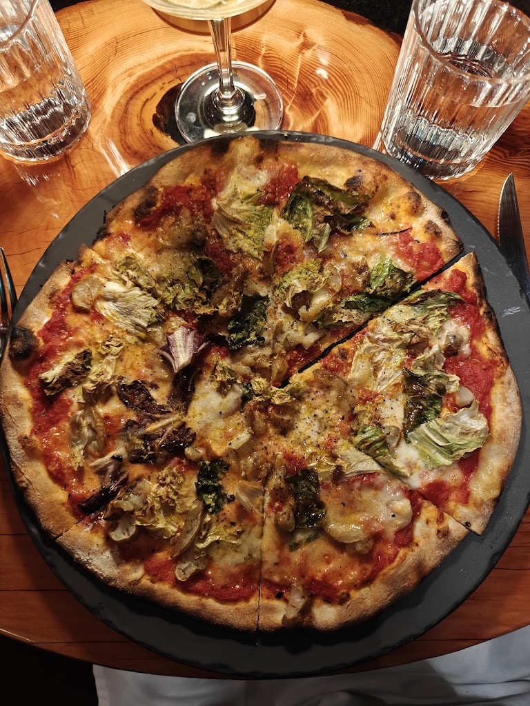Absolutely wonderful experience here. The reception was very courteous and the food great. The ambient is clean and pretty, the background music is not loud, and the acoustics are great for a conversation. We ordered a salad, sourdough, the chicken liver mousse, pizza (big easy), casareccia with lamb ragù, and pork chops. Its a 5/5 definitely, however, my only suggestion would be to reevaluate how much salt is being used in the pizza sauce, it was a bit too much for my taste. Still, being extremely honest, everything was great, especially the pork chops and chicken liver mousse.