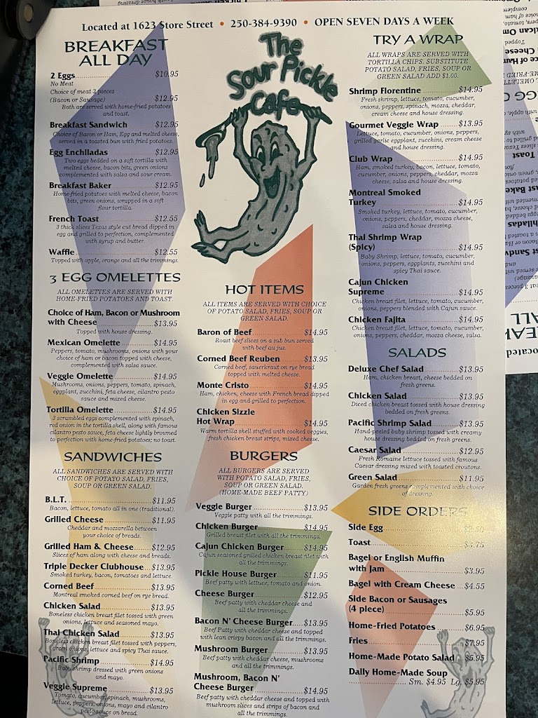 The quality of food was amazing. The owner herself was very friendly and takes good care of her customers. The breakfast was delicious, we ordered a few things and everything was amazing. It was our first time there as we were on vacation to Victoria from Toronto and Seattle. We looked for breakfast places in the area online. Best decision to go to Sour Pickle cafe. Very happy and satisfied with the food, quality and quantity. Highly recommended.