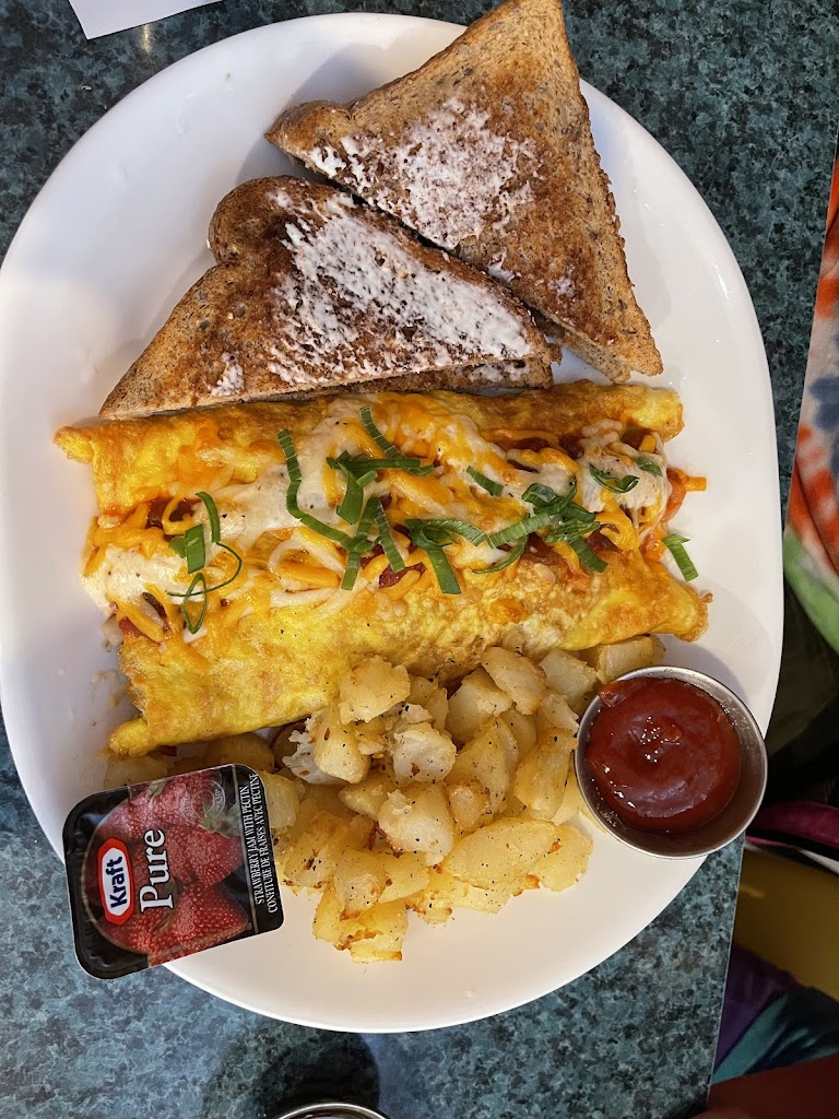 Amazing cozy spot! Service was so friendly and attentive - I never had an empty cup of coffee. And the veggie omelette was tasty and STACKED with ingredients. Wanted to finish it but I couldnt. Big thumbs up!